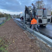 Coulage ou pose de bordures en bord de route : nous disposons de notre propre machine à couler les bordures, ce qui nous permet un travail rapide, techniquement plus résistant et de qualité.